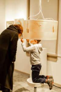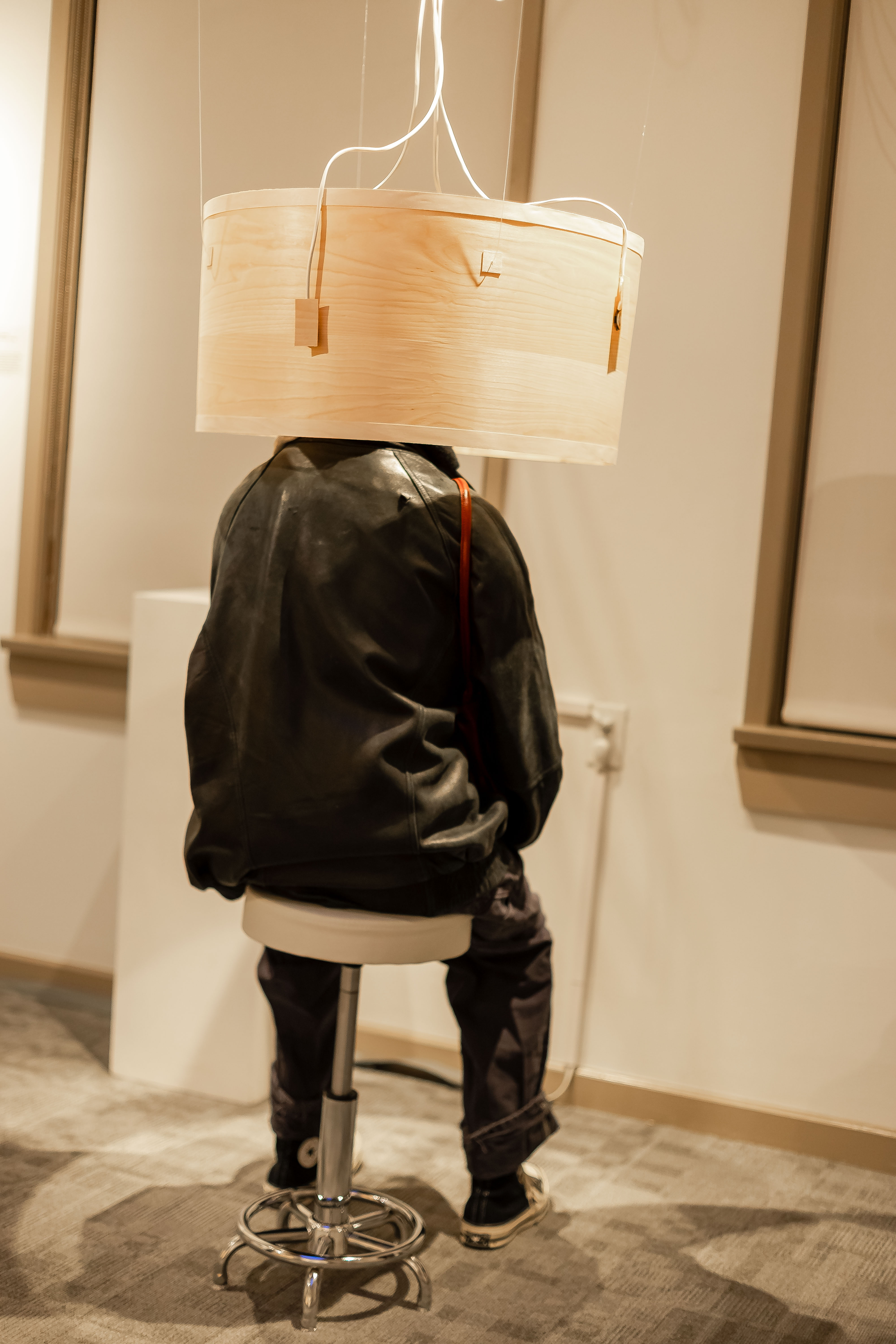 - Take a seat on the stool provided and adjust the height as needed. Please do not touch the hanging structure.